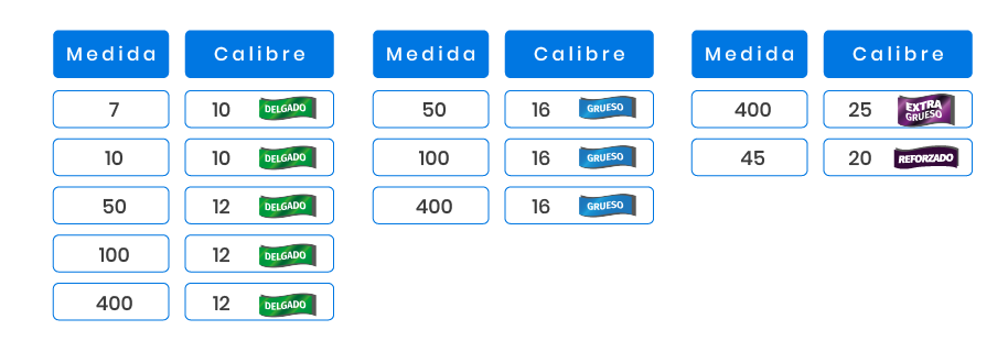 Este calibre está diseñado para las necesidades de uso comercial o restaurantero, que conlleva mayor resistencia con un calibre superior o más producto, preservando nuestra calidad.