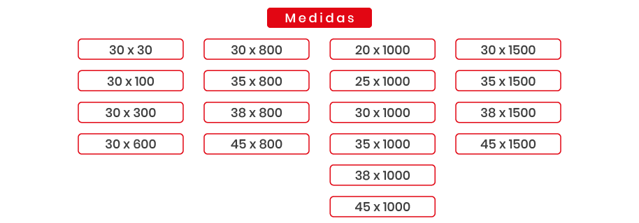 Amplia disponibilidad de medidas para las diferentes necesidades de nuestros clientes.